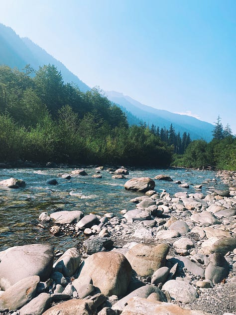 A few weeks later, it’s October and the sky is starling blue. The moon is a halved shadow in the sky. The groves of alabaster alders lining the Quinault river shimmer in a hue somewhere between green and gold. It is the big leaf maples that sing the loudest.